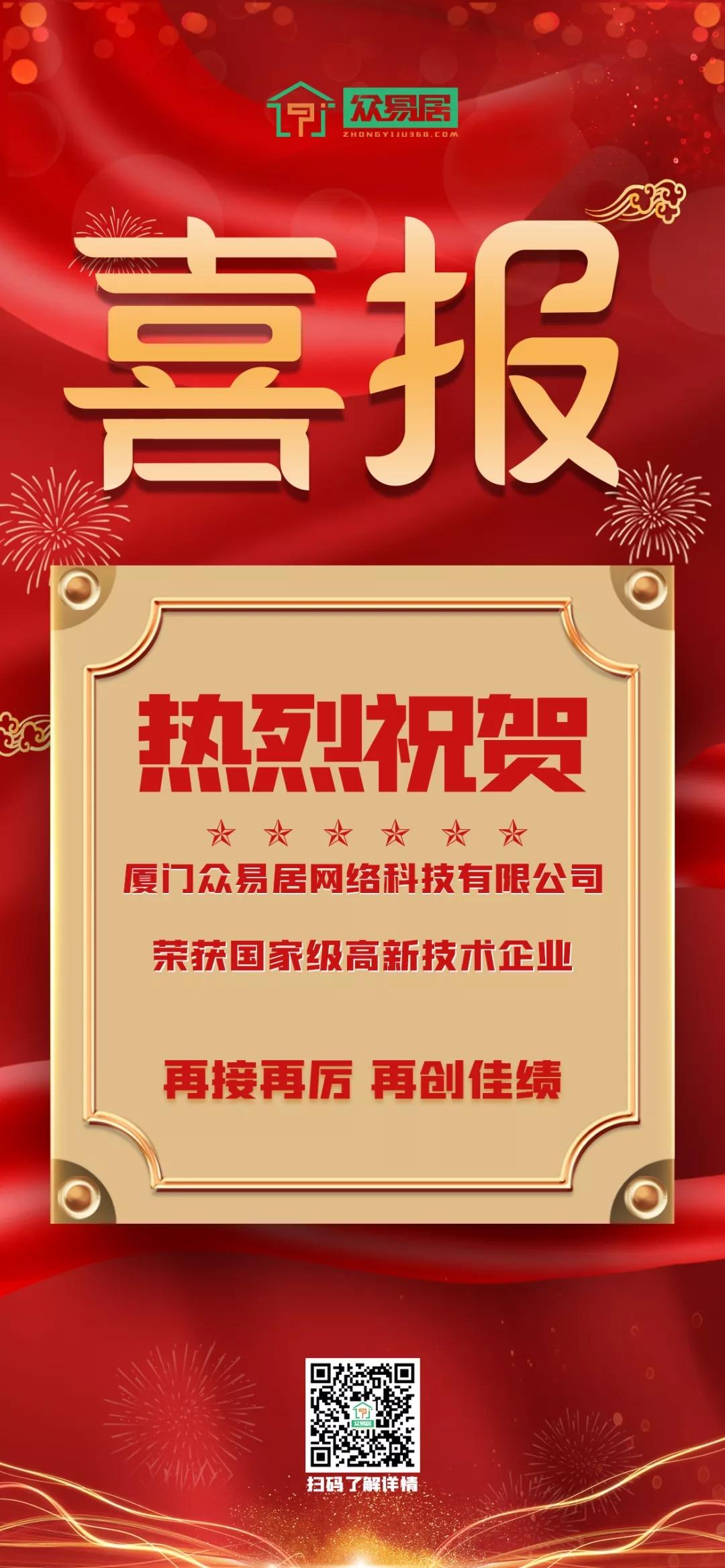 喜報(bào)丨祝賀眾易居榮獲國家級(jí)高新技術(shù)企業(yè)!