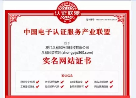 近日,眾易居裝修網榮獲“中國認證聯(lián)盟行業(yè)知名品牌”榮譽稱號,眾易居裝修網已成功實名認證成企業(yè)統(tǒng)一信任網站,在任何網站搜索眾易居裝修網都將展示企業(yè)網站的官網標志,這標志著眾易居裝修網得到了權威認證,平臺用戶將更加安全地進行平臺功能體驗。