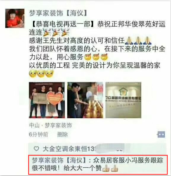 每一單成交的開始,都是源于客戶對(duì)你的信任。近期,眾易居裝修網(wǎng)平臺(tái)又迎來(lái)了一波簽單熱浪,捷報(bào)頻傳,看的我們都熱血沸騰了!
