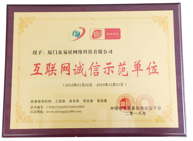 當然,更值得一提的是,今年年初眾易居榮獲由工信部、商務(wù)部、國資委、發(fā)改委共同指導(dǎo),中國電子商務(wù)信用認證平臺頒發(fā)的“互聯(lián)網(wǎng)誠信示范單位”榮譽稱號,成為互聯(lián)網(wǎng)家裝領(lǐng)域首個獲得此殊榮的平臺。
