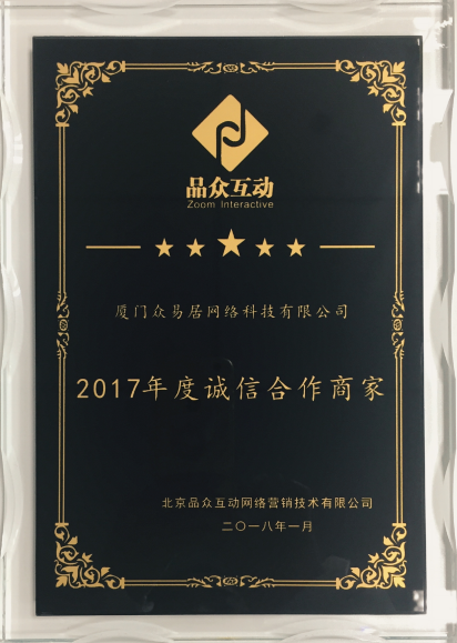 近日,今日頭條代理商品眾互動授予廈門眾易居網(wǎng)絡(luò)科技有限公司“2017年度誠信合作商家”榮譽稱號,這不僅意味著眾易居與今日頭條保持良好的合作互動關(guān)系,更大程度地反映出眾易居裝修網(wǎng)在滿足客戶需求方面的強(qiáng)大投入,無形中增強(qiáng)了客戶對平臺的信心。