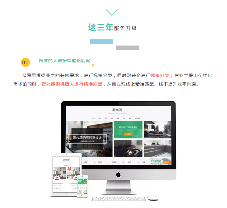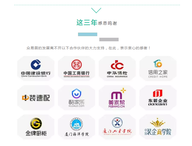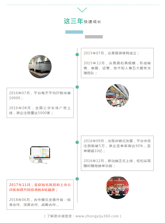 長風破浪會有時,直掛云帆濟滄海。眾易居經過3周年的茁壯成長,越來越強大。開通208個城市分站,入駐裝企3萬+,設計師4萬+,服務1600萬+業(yè)主,累計發(fā)布裝修金額150億,累計裝修交易金額100億,眾易居快速成長為一家為裝修業(yè)主及家裝產業(yè)鏈上下游供應商提供“大數據精準營銷服務”的互聯(lián)網高科技企業(yè)。