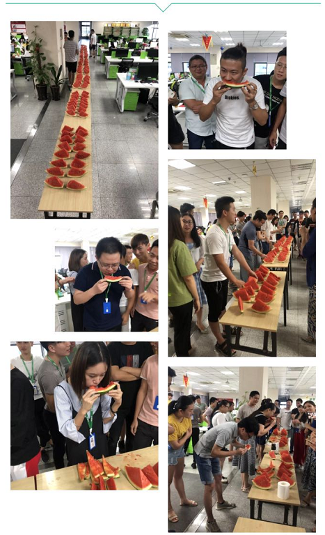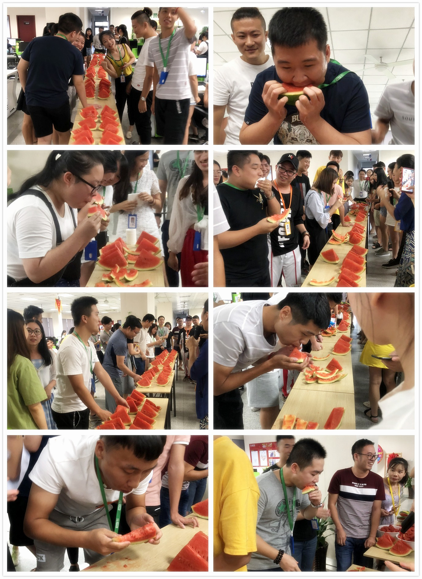七夕之際,眾易居為小伙伴們舉辦了一場別開生面的“吃西瓜大賽”,在炎炎夏日中為員工帶來涼爽與歡樂。1個擂臺、8支團(tuán)隊(duì)、百斤西瓜......參賽人員需以最快的速度、最短的時間將西瓜吃完,吃完西瓜用時最短的獲勝。為了贏得比賽,選手們吃相各異,他們的表情時而“猙獰”,時而歡快,引得大家哄堂大笑。
