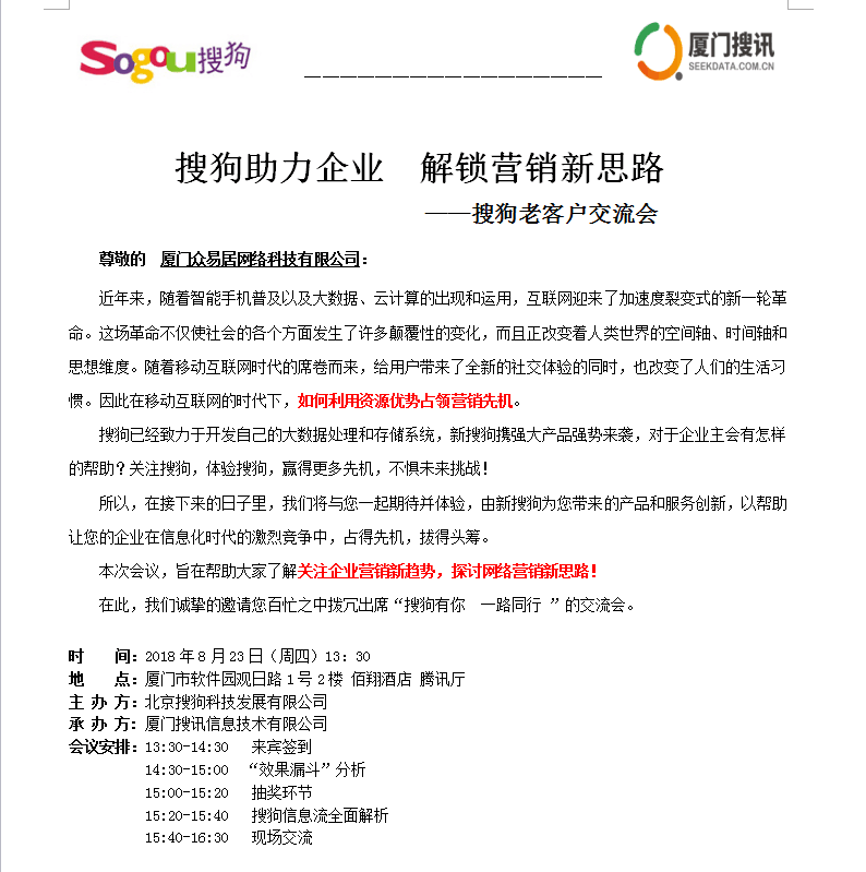 8月23日,眾易居受邀參加“搜狗有你 一路同行”交流會(huì),攜手解鎖數(shù)據(jù)營銷新思路。作為搜狗的戰(zhàn)略合作伙伴,眾易居將利用搜狗搜索月活躍用戶數(shù)5.11億這樣的大數(shù)據(jù),拓寬流量來源,豐富裝修內(nèi)容,精準(zhǔn)定位目標(biāo)受眾,實(shí)現(xiàn)訂單漏斗式轉(zhuǎn)化。