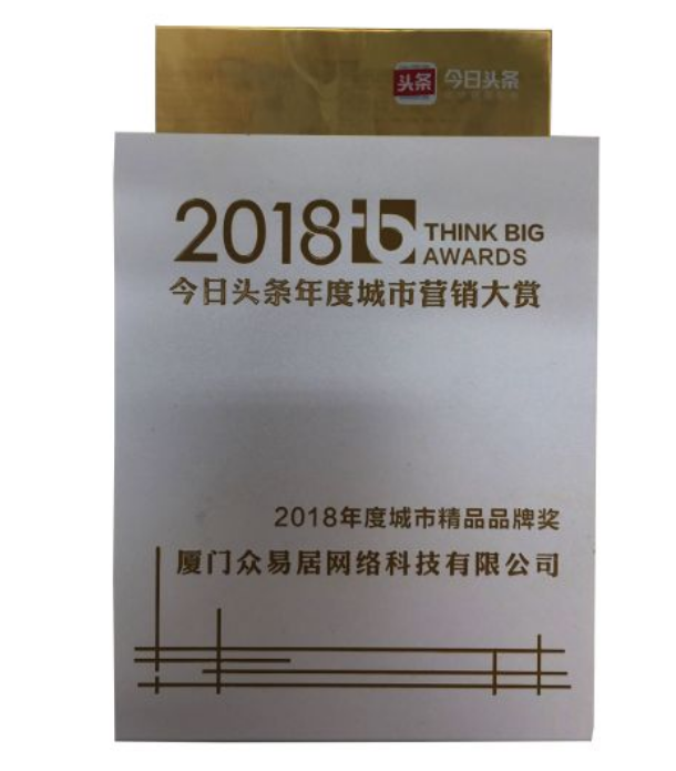 2019年1月,作為廈門(mén)特邀嘉賓出席“智創(chuàng)·共贏——2018年今日頭條福建分公司客戶答謝會(huì)”,并榮獲“今日頭條2018年度城市精品品牌獎(jiǎng)”。