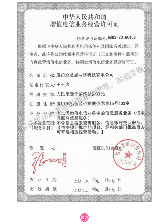 2018年9月,榮獲《中華人民共和國(guó)增值電信業(yè)務(wù)經(jīng)營(yíng)許可證》(即ICP許可證),在合規(guī)備案運(yùn)營(yíng)的路上再邁出堅(jiān)實(shí)一步,率先成為全國(guó)范圍少數(shù)獲得ICP許可證的互聯(lián)網(wǎng)家裝平臺(tái);