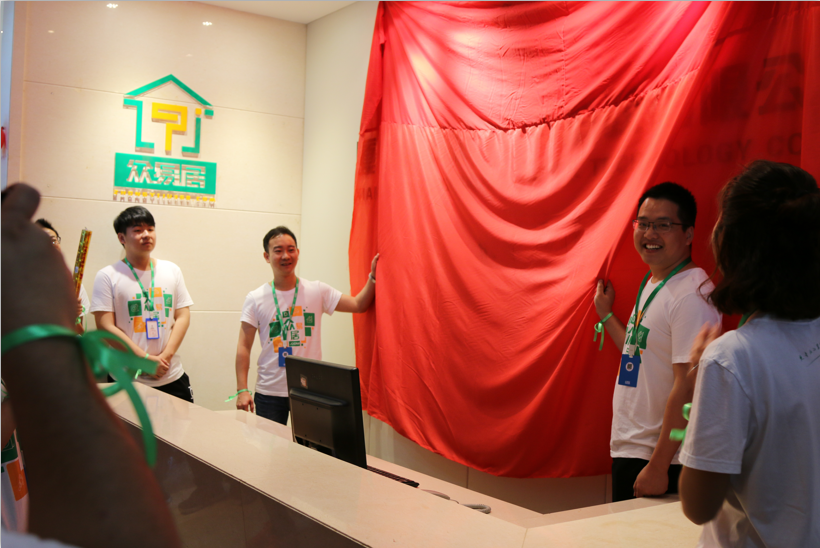 在一片歡呼和禮炮聲中,眾易居創(chuàng)始人兼CEO王玉火、聯(lián)合創(chuàng)始人兼COO朱偉共同揭開公司logo墻幕布,全體員工共同見證!